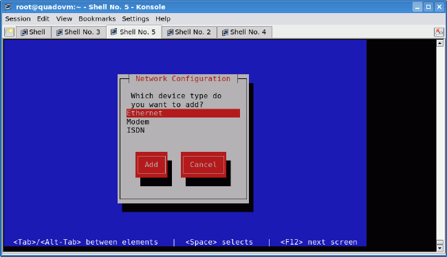 - In the Hostname Configuration select manual mode and enter some descriptive hostname for this server -- e.g. "quadovm".