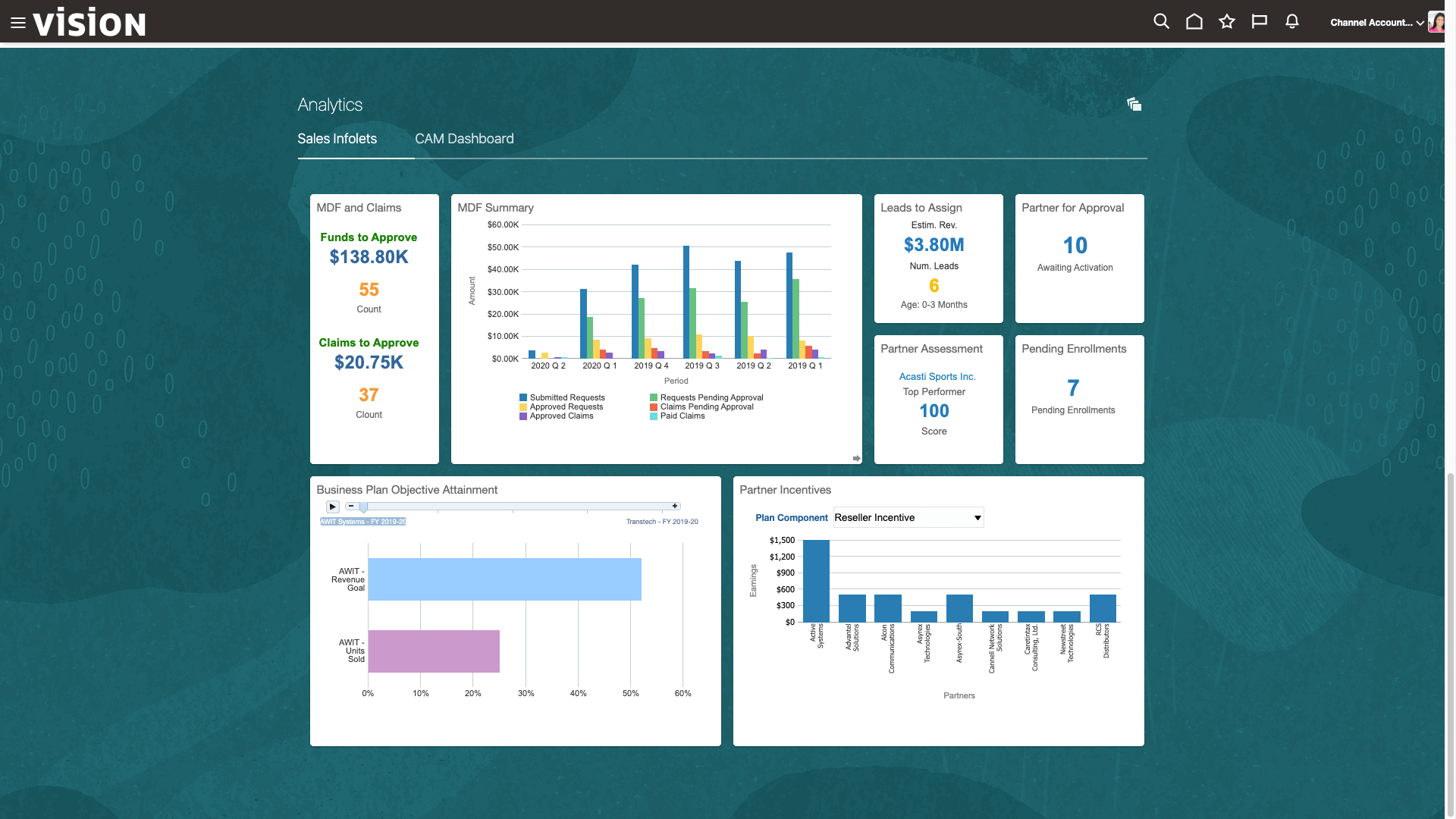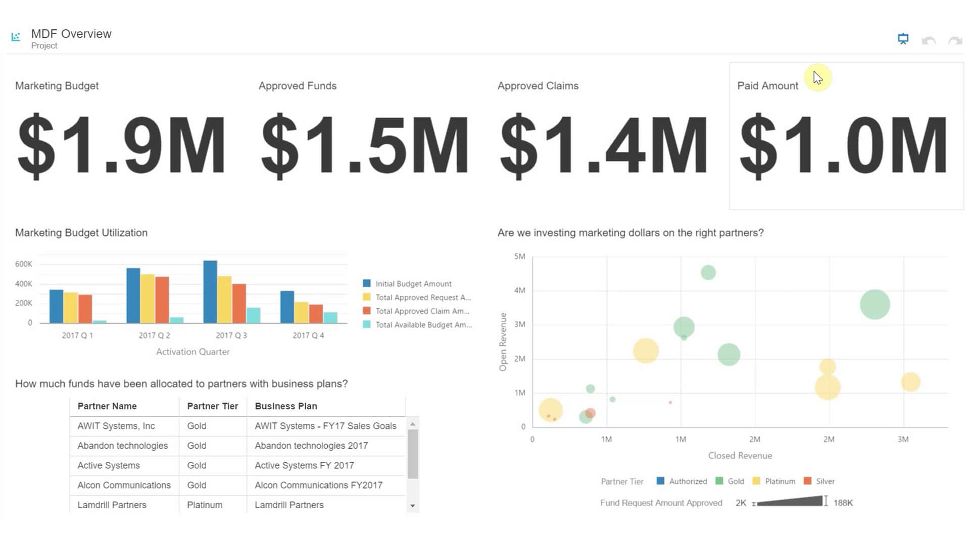 依計畫協同合作、提供市場開發基金 (MDF),以及核准 MDF 要求。使用互連的商業智慧工具識別最佳績效者、評估 MDF 支出與回報,以及評估和改進薪酬計畫。