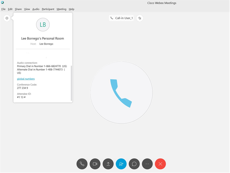 Webex knows the host's Intercall account is associated with their Webex Meeting Center profile but it doesn't know which Call-In User you or any of the participants are.