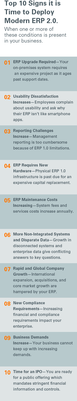 Research shows that legacy ERP 1.0 systems were not designed for usability and insight.