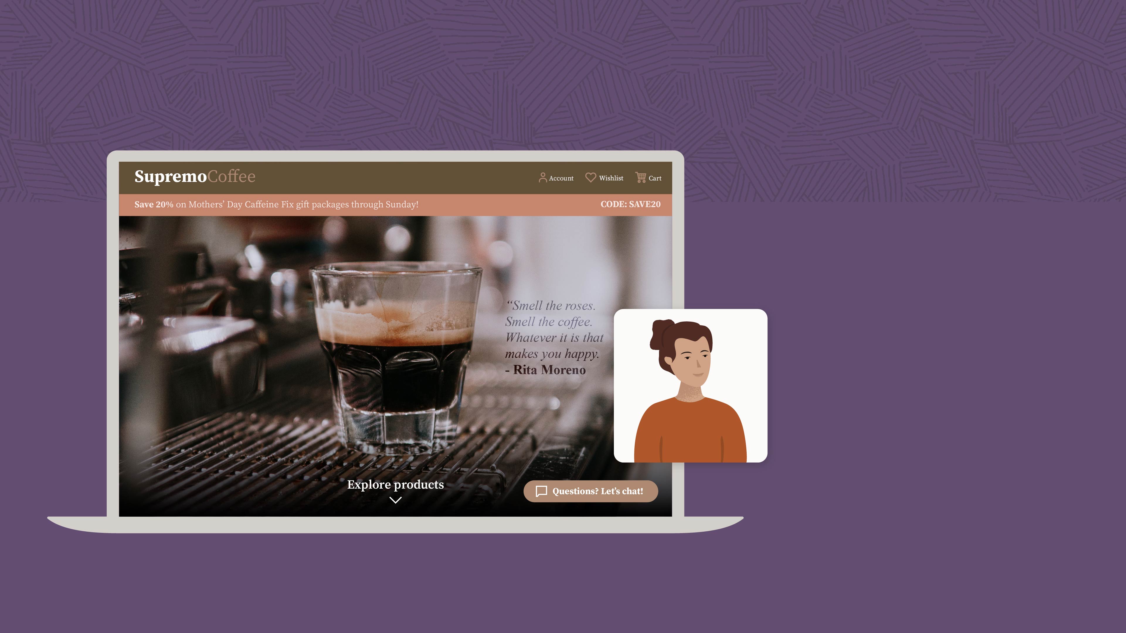 Sofia, a customer of Supremo Coffee, has questions about recently purchased products. She visits your website and clicks on the chat window.