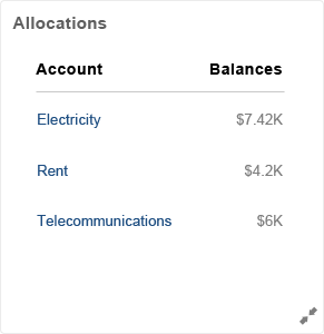 Configure up to five instances of this infolet to display funds availability for a budget account. Create budget account groups and itemize budget accounts to capture the areas of your organizations to monitor for funds availability.