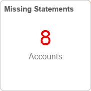 Displays the number of bank accounts with missing bank statements. Bank statements are counted as missing when the difference between the last bank statement date and the current date is more than a specified threshold.