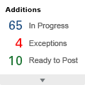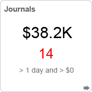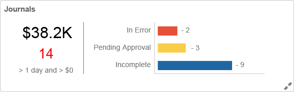 The expanded view graphs journals by status, including:Posting and import errorsPending approvals, including rejected batchesIncomplete batches, including unposted batches