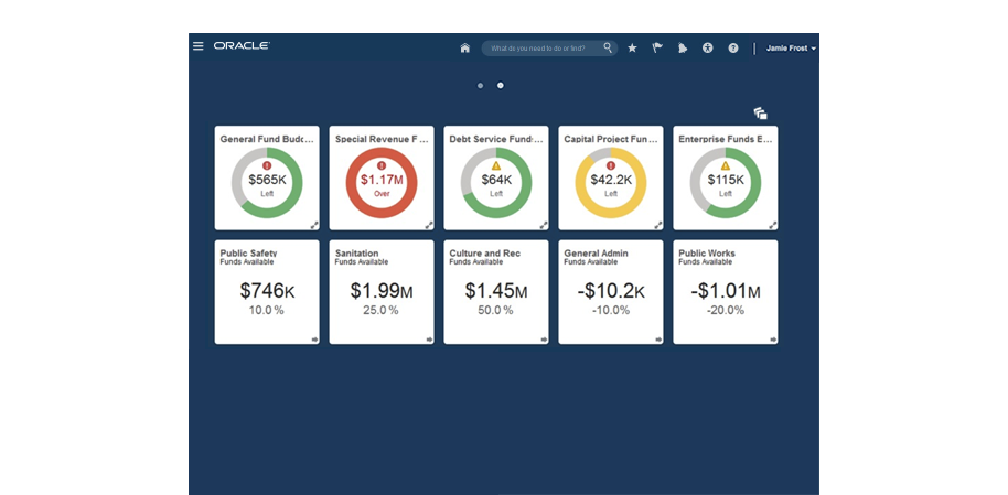 The infolets for Budgetary Control enables better budget decision-making with improved insight into budget consumption and funds availability across your organization.