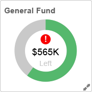 In the default view, the grey region of the circle graph represents the total amount of the budget accounts tracked by the infolet. The colored portion of the circle represents the total amount consumed across the budget accounts.