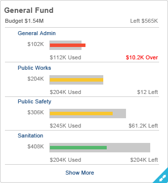 Displays the amount consumed and status of a specified group of budget accounts. Configure up to five instances of this infolet to track different budget account groups.