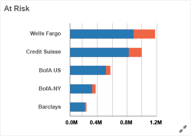 Highlights the liquidity risk arising from bank accounts with a balance below target. Drills to view balance details and transfer funds to bring account balances to target balances, thus alleviating risk.
