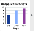 Unapplied Receipts: Displays the number of unapplied receipts, categorized into three date-range buckets. When you select this tile, the work area displays the recommended applications that were automatically generated for the receipt.