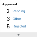 Approval: Displays the number of invoices that are pending your approval, pending approval from others, or are rejected.