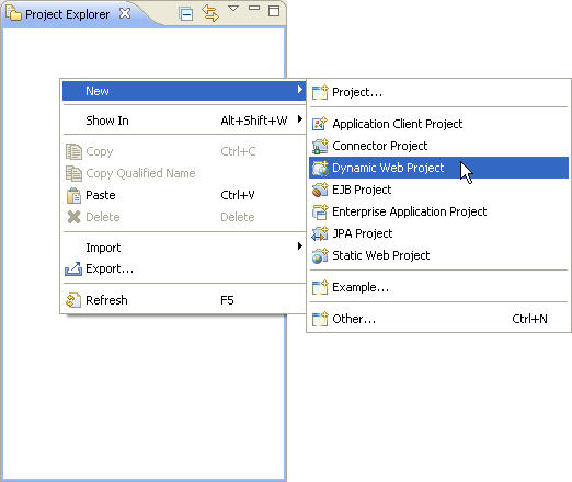 1. Right click in the project explorer and choose New > Dynamic Web Project