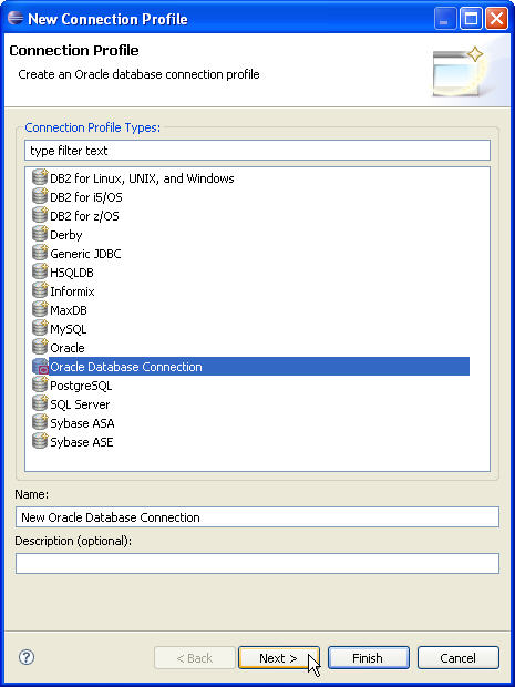 7. Choose the Oracle Database Connection from the list and click next.