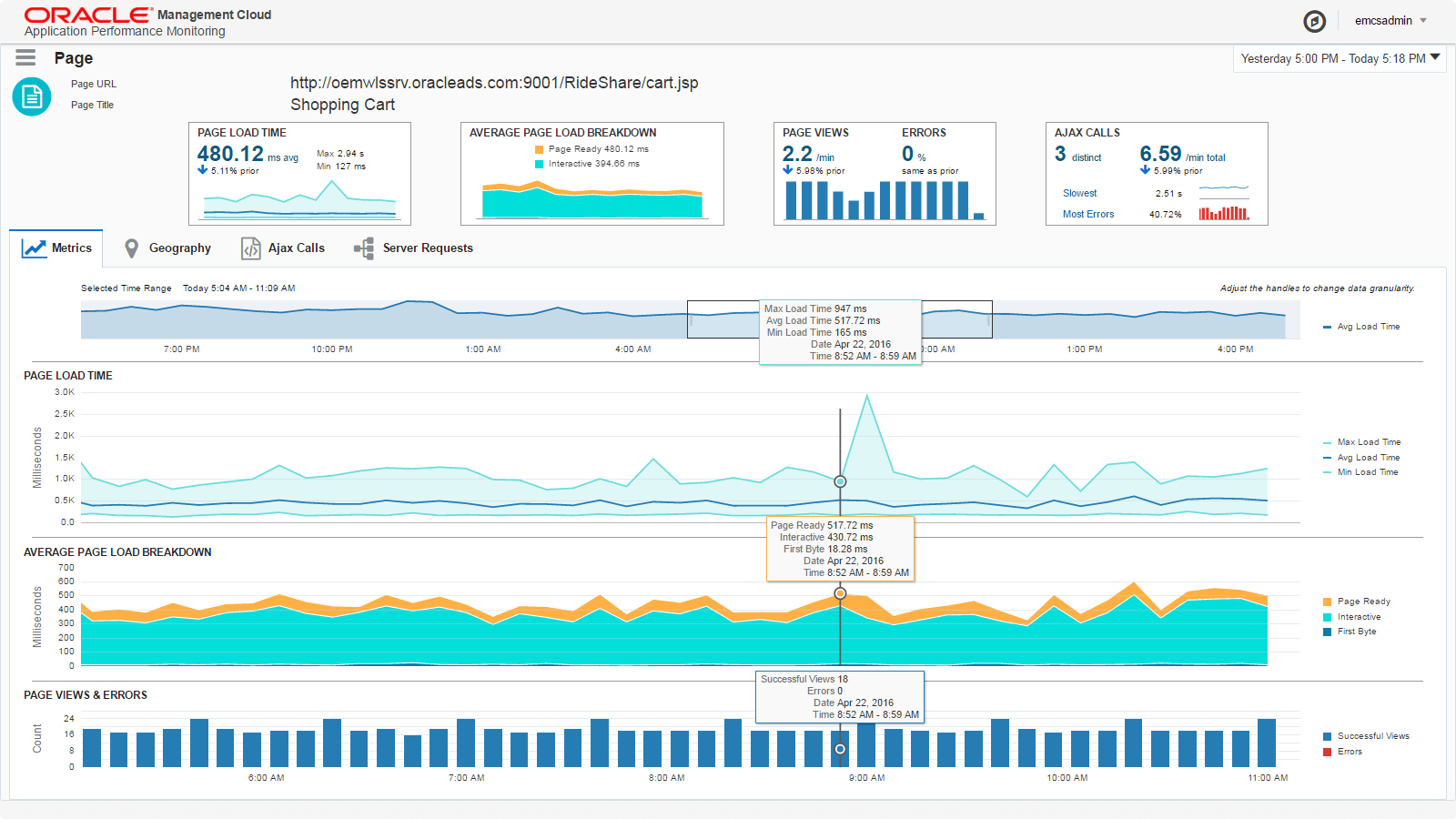 Application Performance Monitoring provides development and operations teams with the information that they need to find and fix application issues fast, via deep visibility into your application performance from end user experience, through application server requests, and down to application logs.