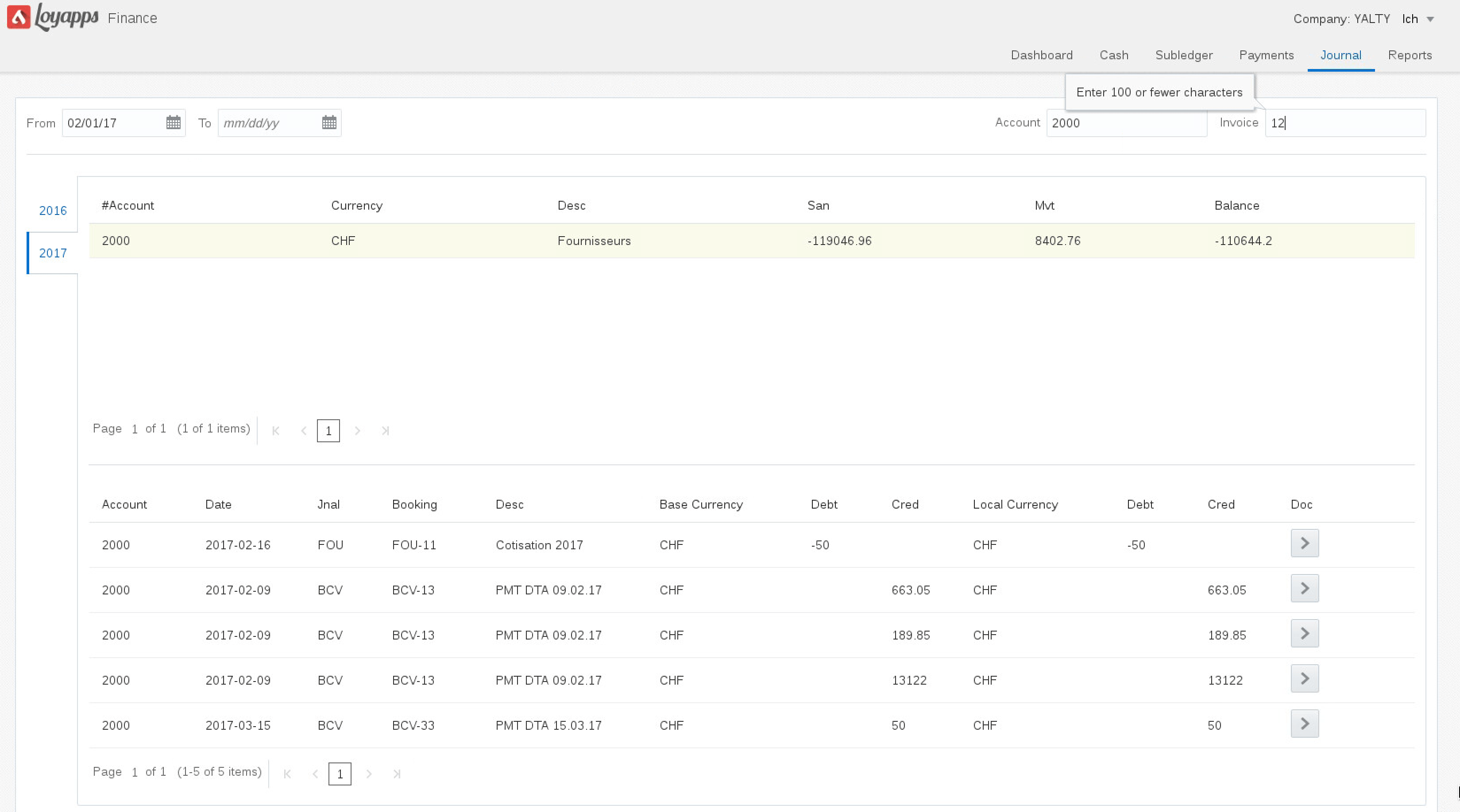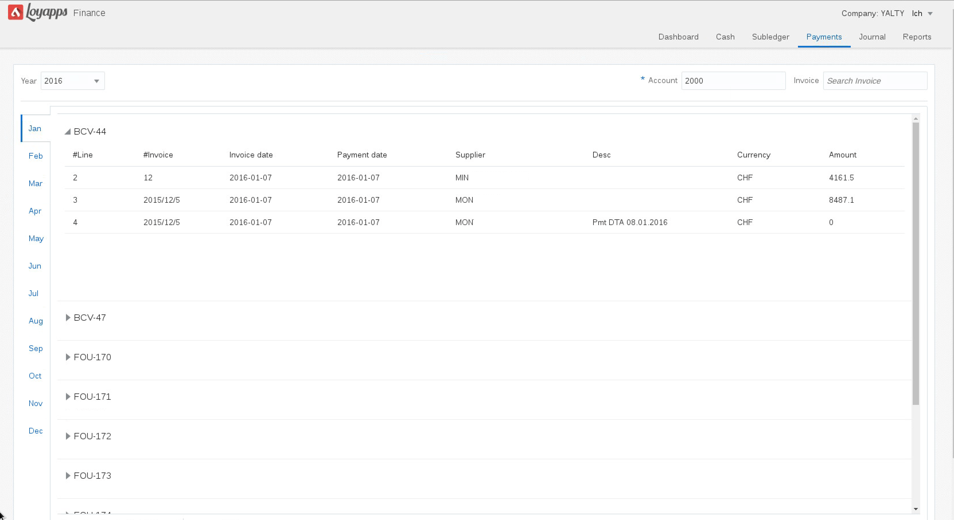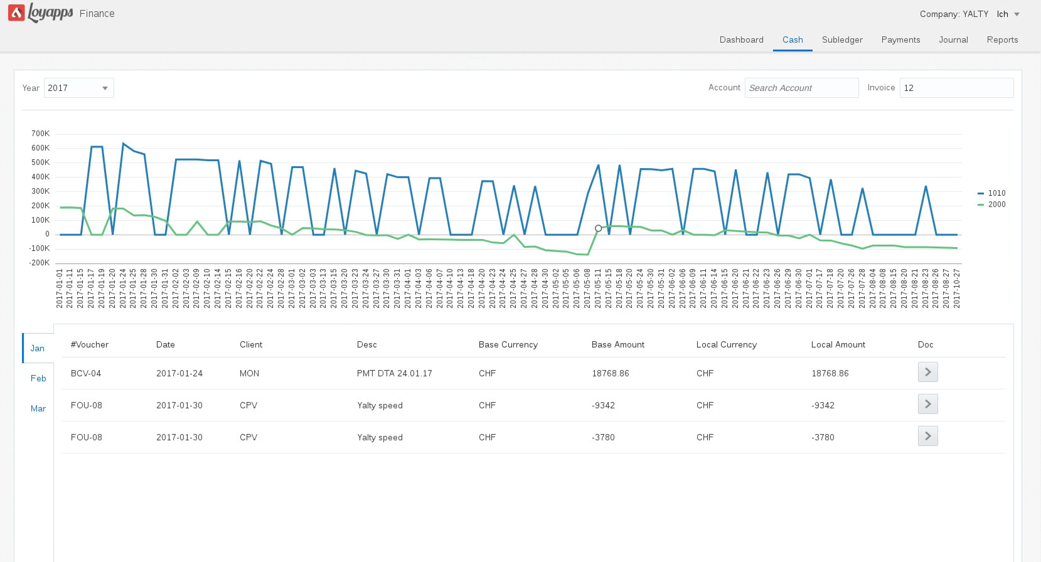 Loyco is using Oracle JET to build and run their financial reporting application. This application improves user experience and allows easy navigation through financial data reports. Without extra roundtrips to the REST back-end service, drilldowns related to Cash, Subledger, Payments and Journal modules are displayed using such JET components as tables, lists and charts. All this allows seamless and fast data browsing on the client side. The application is relying on a dynamic UI, which provides filter and sort options for data based on such criteria as financial year, month, etc. There are no static filters defined, the UI is driven by dynamic master-detail data coming from the back-end. The Oracle JET based Loyco Finance application was built by the Red Samurai Consulting team.