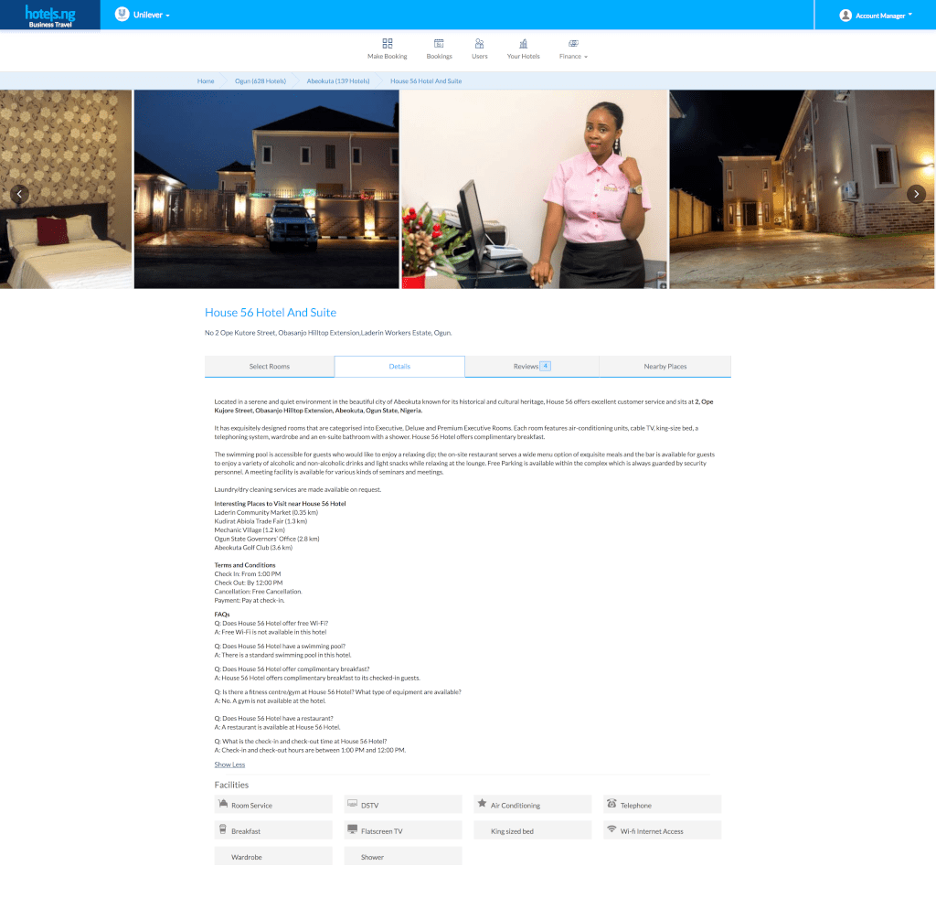 Hotel Booking Limited is an online travel agency specialising in hotel bookings within Nigeria. We help customers book hotel rooms online, provide comprehensive help and support to our clients and make the hotel booking process smooth and easy.
