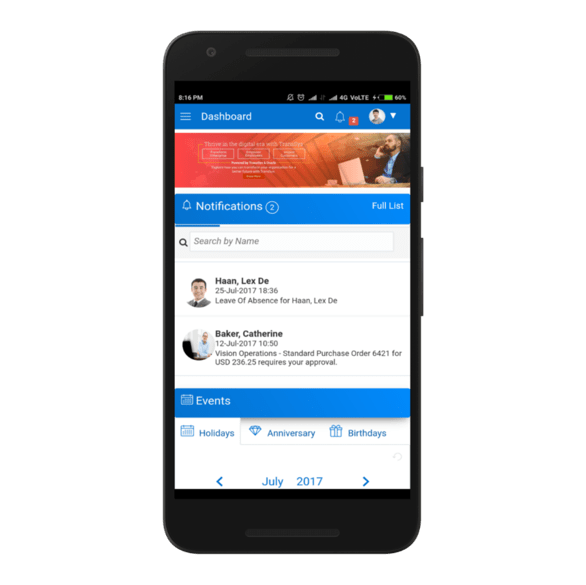 TransSys has productized Mobebiz – An Enterprise Mobility Solution for Oracle EBS completely built using Oracle JET. It is ready to use mobile application which integrates with Oracle e-Business Suite ERP. It enables your workforce to access and update your Oracle EBS ERP data from anywhere anytime. Features Include Approval Management, Employee Profile, Absence, Compensation, HR Requests, Directory and Enterprise Asset Management.