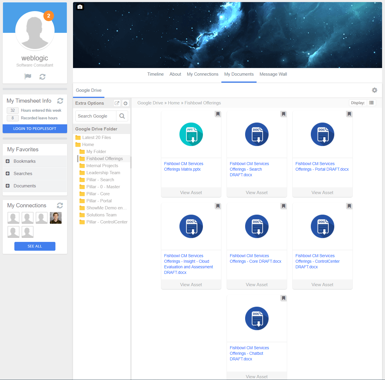 - This solution from Fishbowl unifies the user experience on multiple cloud drive platforms – Oracle WebCenter Content, DropBox, Google Drive, Oracle Content Experience Cloud and Microsoft One Drive. It can be exposed as a desktop application within Electron and enables content synchronization with WebCenter Portal.