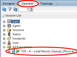 実行内容を確認するには、Operatorナビゲータに移動して、All Executionsノードを開いて現在の実行を確認します。
