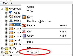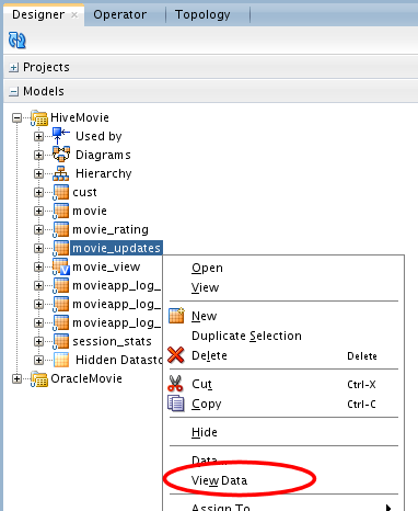 これにより、Hiveのmovie表のリコンシリエーション済みバージョンの問合せに使用できるビューが表示されます。なお、このチュートリアルでは、リコンシリエーション済みの表を作成するためにOracle Data Integratorも使用します。Reconciliation by Viewはリアルタイムのステータスを提供しますが、頻繁に問い合わせるため、より多くのリソースが消費されます。