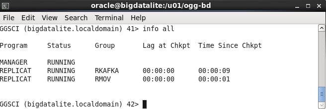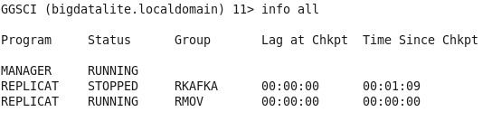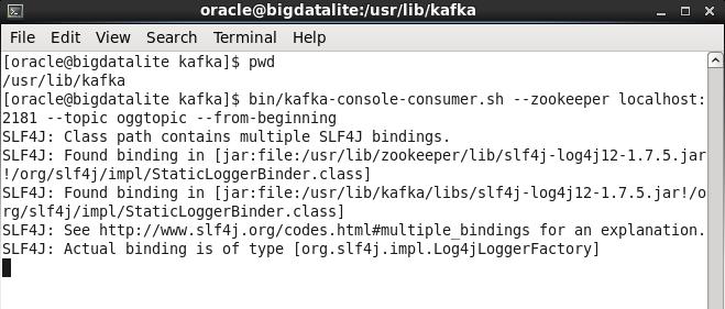 >bin/kafka-console-consumer.sh --zookeeper localhost:2181 --topic oggtopic --from-beginning