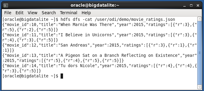 hdfs dfs -cat /user/odi/demo/movie_ratings.json