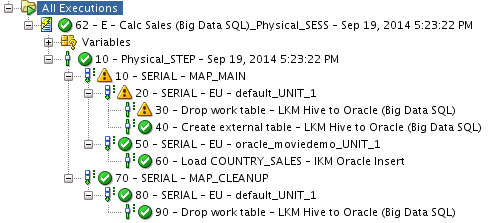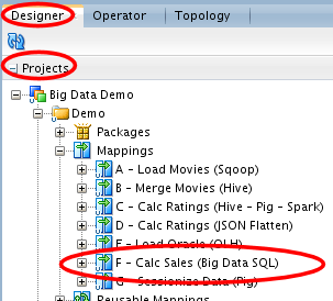 次の項では、Oracle Big Data SQLを使用する1つのマッピングで、Oracle DBとHiveの両方のデータをODIで変換します。Big Data SQLを使用すると、Oracleの機能豊富なSQL言語を使用してOracle ExadataからOracle Big Data Appliance上のデータをシームレスに問い合わせることができます。Oracle Databaseに含まれる他のすべてのデータとまったく同じ方法で、Hadoopに格納されているデータに対して問合せが実行されます。