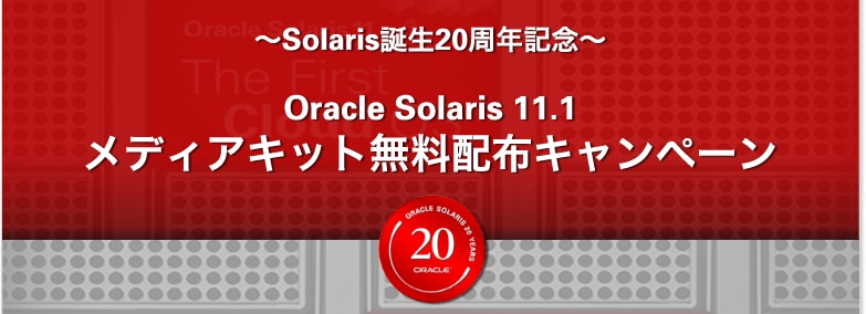 オラクルでは、この度、Solarisが誕生20周年を記念して、Solaris 11.1のOracle Technology Network (OTN) 開発者ライセンスつきメディアキットを先着500名様に無料で差し上げます。