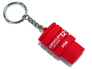サンフランシスコで開催されたOracle OpenWorld 2013のデモグラウンドで、このPDBのイメージをかたどったデザインのUSBスティックを参加者に配布し、マルチテナントの実践セミナーが実施されました。