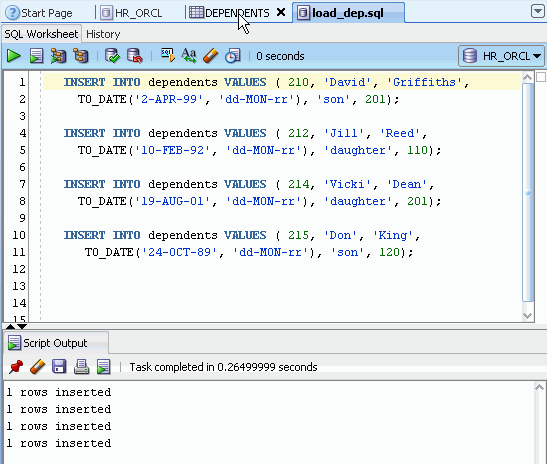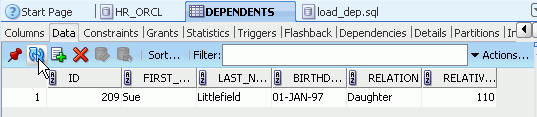 以下の手順に従って、DEPENDENTS表にデータを追加します。