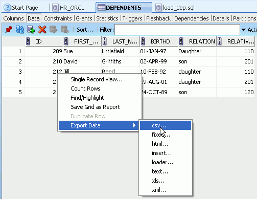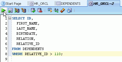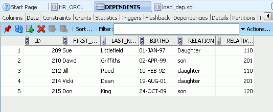 DEPENDENTSデータにアクセスする方法の1つは、DEPENDENTS表に対してSELECT文を生成し、WHERE句を追加することです。 以下の手順を実行します。