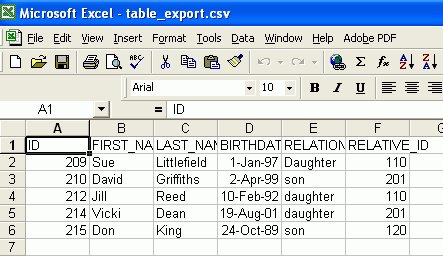 DEPENDENTS.CSVファイルを確認すると、以下のように表示されます。