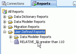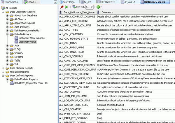 前のトピックで実行したSQLは頻繁に実行する必要があるため、このSQLに基づいたカスタム・レポートを作成します。 さらに、バインド変数を使用してデータベースのデータ・ディクショナリのレポートを実行します。 以下の手順を実行します。