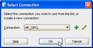 右側のドロップダウン・リストから「HR_ORCL」データベース接続を選択します。