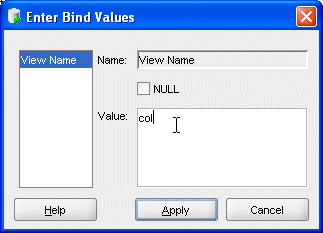 「NULL」チェック・ボックスの選択を解除し、値にcolと入力したら、「Apply」をクリックします。