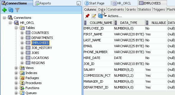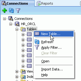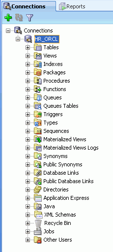 Oracle SQL Developerを使用してデータベース・オブジェクトを管理するための最初の手順は、データベース接続を作成することです。 以下の手順を実行します。