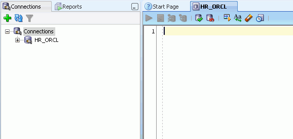 注: 接続を開くと、自動的にSQL Worksheetが開きます。 SQL Worksheetを使用すると、上記で作成した接続に対してSQLを実行できます。
