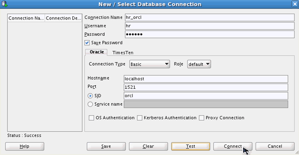 Password: oracle(「Save Password」チェック・ボックスを選択)