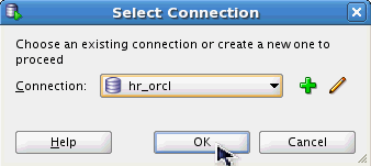 リストから「hr_orcl」接続を選択し、「OK」をクリックします。