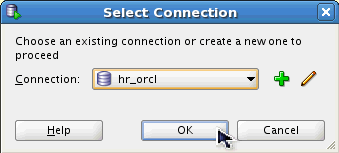 「hr_orcl」接続を選択し、「OK」をクリックします。