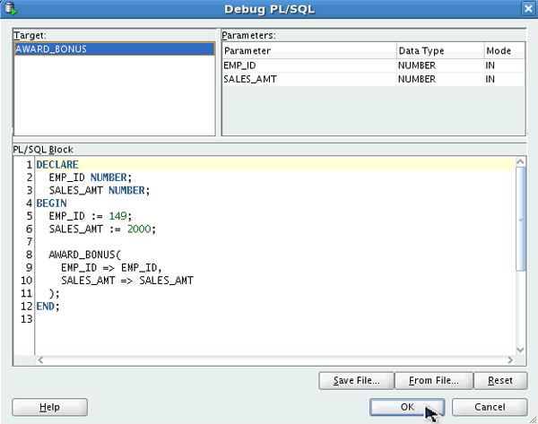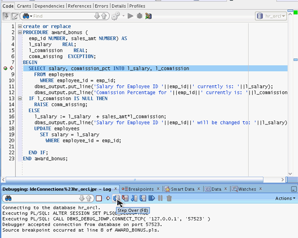 SQL Developer 3.1を使用したプロシージャのテストおよびデバッグ