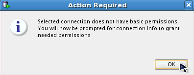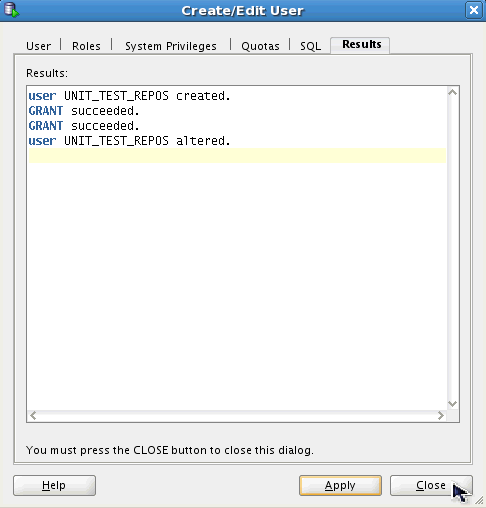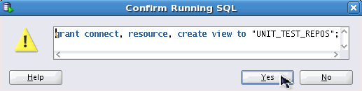 UNIT_TEST_REPOSユーザーには、所定のいくつかの表に対するselectアクセスが必要です。 「OK」をクリックします。