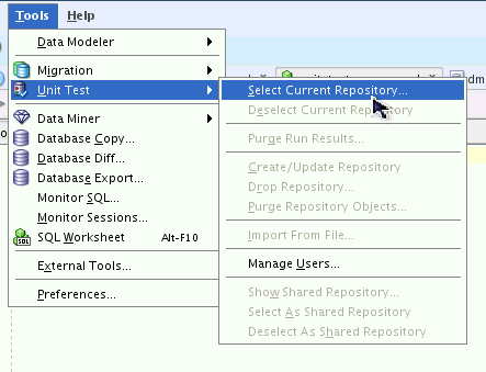 このトピックでは、UNIT_TEST_REPOSという名前のデータベース・ユーザーを作成します。 このユーザーは、ユニット・テスト・リポジトリのデータを保持するために作成します。 次に、作成したユーザーのスキーマ内にリポジトリを作成します。