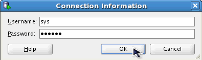 sysのパスワードとしてoracleと入力し、「OK」をクリックします。