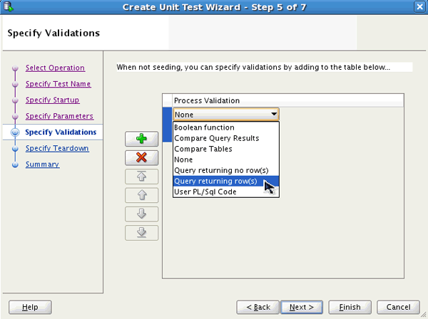 検証を追加するには、「+」アイコンを選択してドロップダウン・リストから「Query returning row(s)」を選択します。