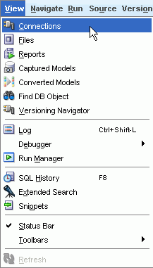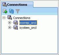リポジトリを作成する前に、mwrepユーザーに対する接続を作成する必要があります。 Connectionsタブで、「Connections」を右クリックし、「New Connection」を選択します。 New / Select Database Connectionウィンドウが表示されます。 注: このタブが表示されていない場合は、「View 」→「Connections」の順に選択します。