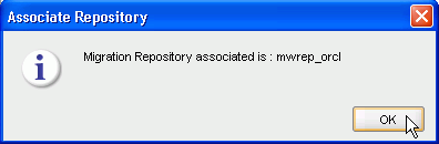「mwrep_orcl」接続を右クリックして、「Migration Repository」→「Associate Migration Repository」の順に選択します。