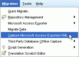 「Migration」→「Capture Microsoft Access Exported XML」の順に選択します。