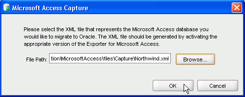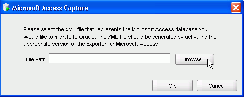 Microsoft Access Captureダイアログ・ボックスが表示されます。 「Browse」をクリックします。