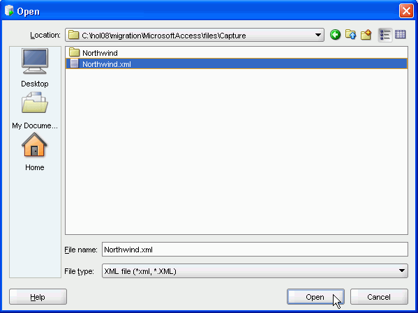Captureディレクトリへ移動し、「Northwind.xml」ファイルを選択します。
