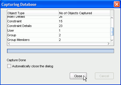 オブジェクトが取得されます。 処理が完了したら、「Close」をクリックします。
